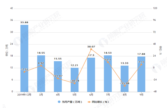 據(jù)國家統(tǒng)計(jì)局市場調(diào)查統(tǒng)計(jì)數(shù)據(jù)顯示,2019年8月江西省原鹽產(chǎn)量為13.33萬噸,同比下降35.98%,2019年9月江西省原鹽產(chǎn)量為17.88萬噸,同比增長7.13%。2019年1-9月江西省原鹽產(chǎn)量147.25萬噸,同比...