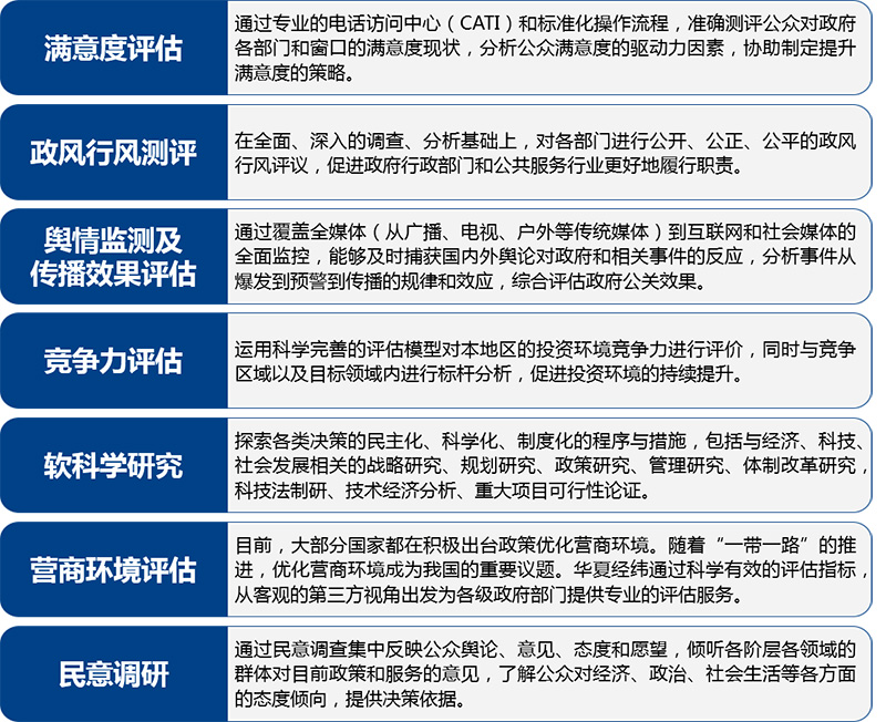 華夏經(jīng)緯可以為各級(jí)政府部門提供以下方面的研究咨詢服務(wù):