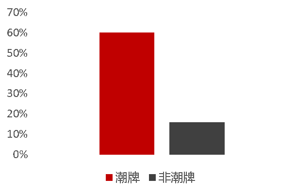(3)2017年起,潮牌服裝市場規(guī)模增長迅速,潮牌消費(fèi)增速是非潮牌的3.7倍。增長速度達(dá)到62%,而非潮牌消費(fèi)增速是17%。潮牌的消費(fèi)者數(shù)量增幅完勝非潮牌。